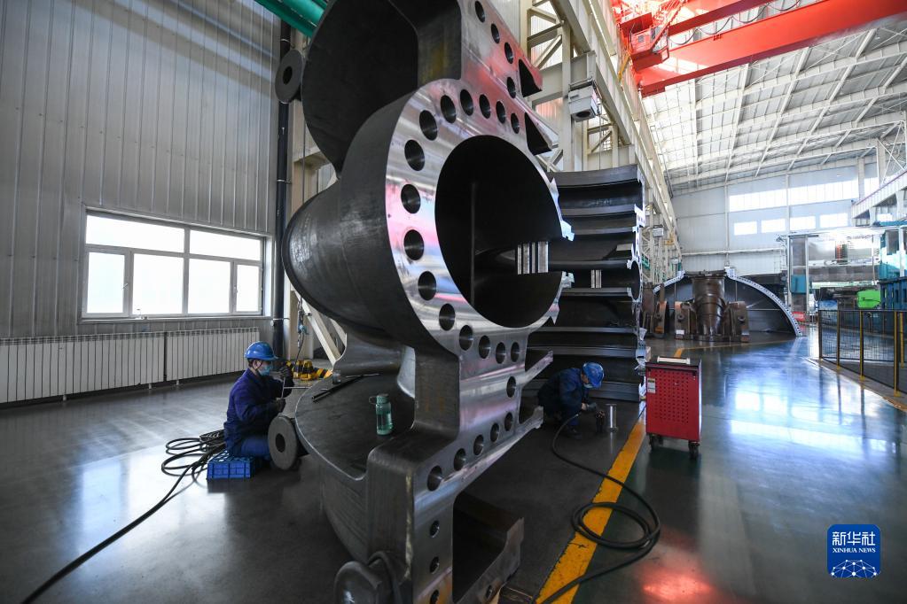 哈电集团哈尔滨汽轮机厂有限责任公司工人在生产车间作业(10月27日摄)。