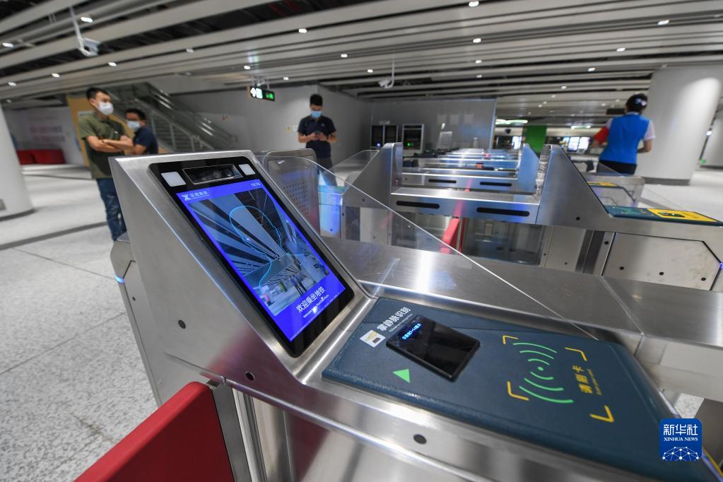 这是10月28日在深圳地铁黄木岗枢纽拍摄的可以实现人脸识别和掌静脉识别的闸机。