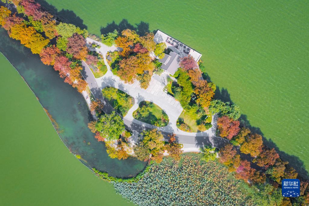 10月25日拍摄的江苏省南京玄武湖公园秋景(无人机照片)。
