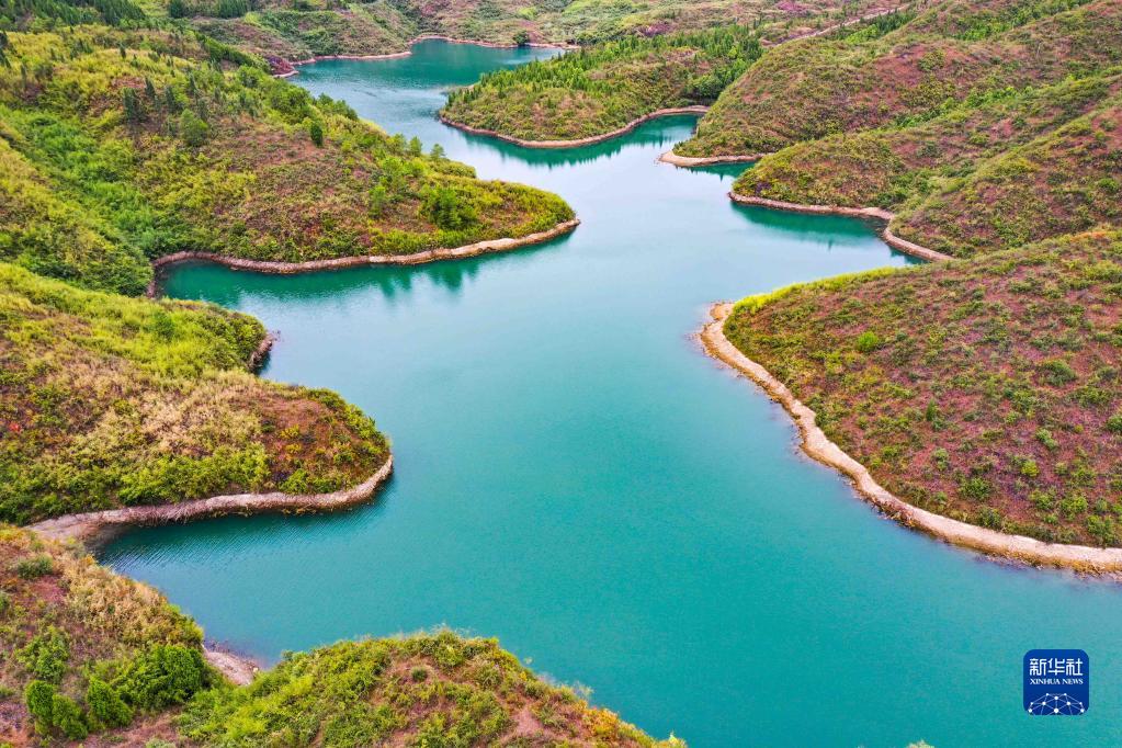 这是10月10日在贵州省铜仁市玉屏侗族自治县白岩河水库拍摄的秋景(无人机照片)。