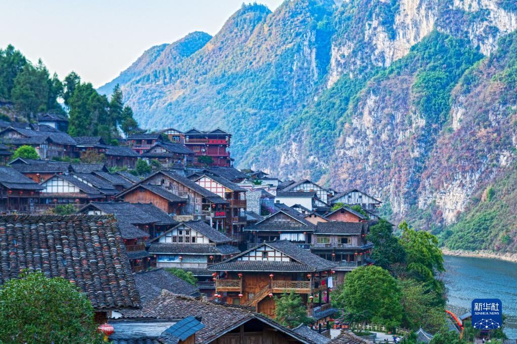这是10月4日在重庆市酉阳土家族苗族自治县拍摄的位于乌江江畔的龚滩古镇秋景。