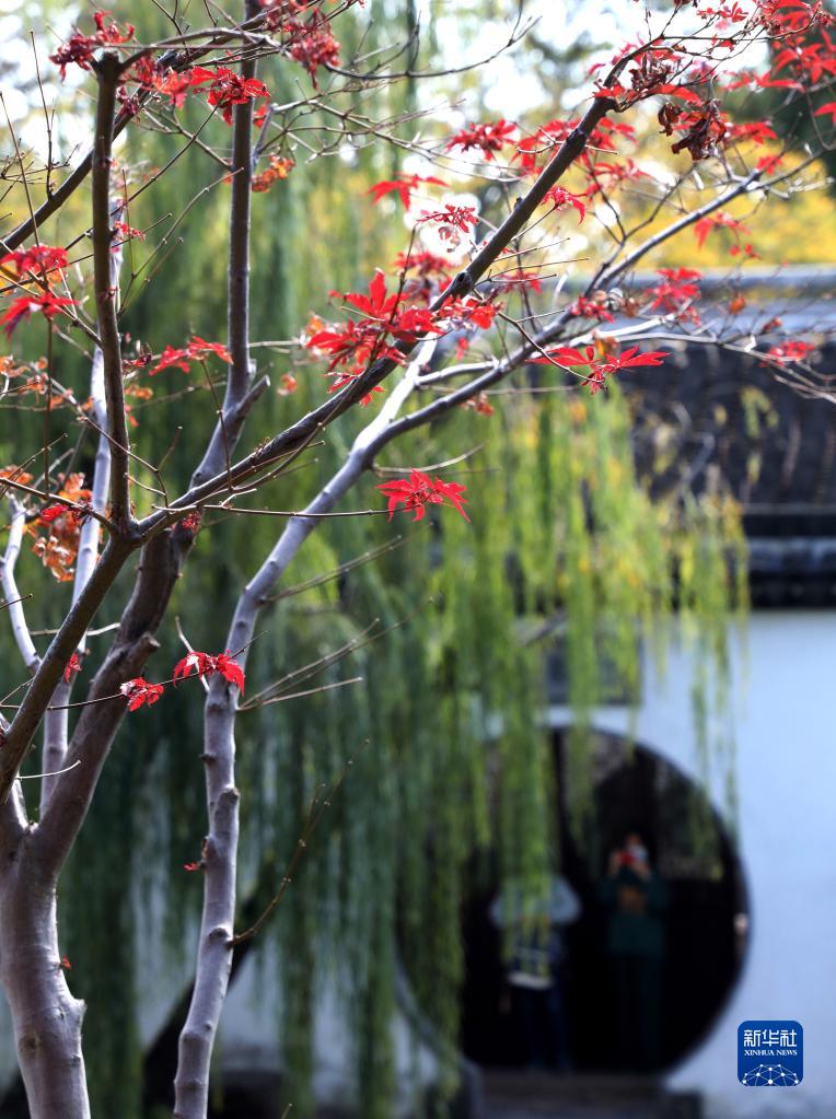 10月20日,游人在江苏省苏州市可园拍摄秋景。