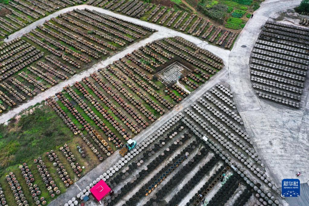 这是10月28日拍摄的贵州省赤水市黔老翁醋厂晾晒区(无人机照片)。