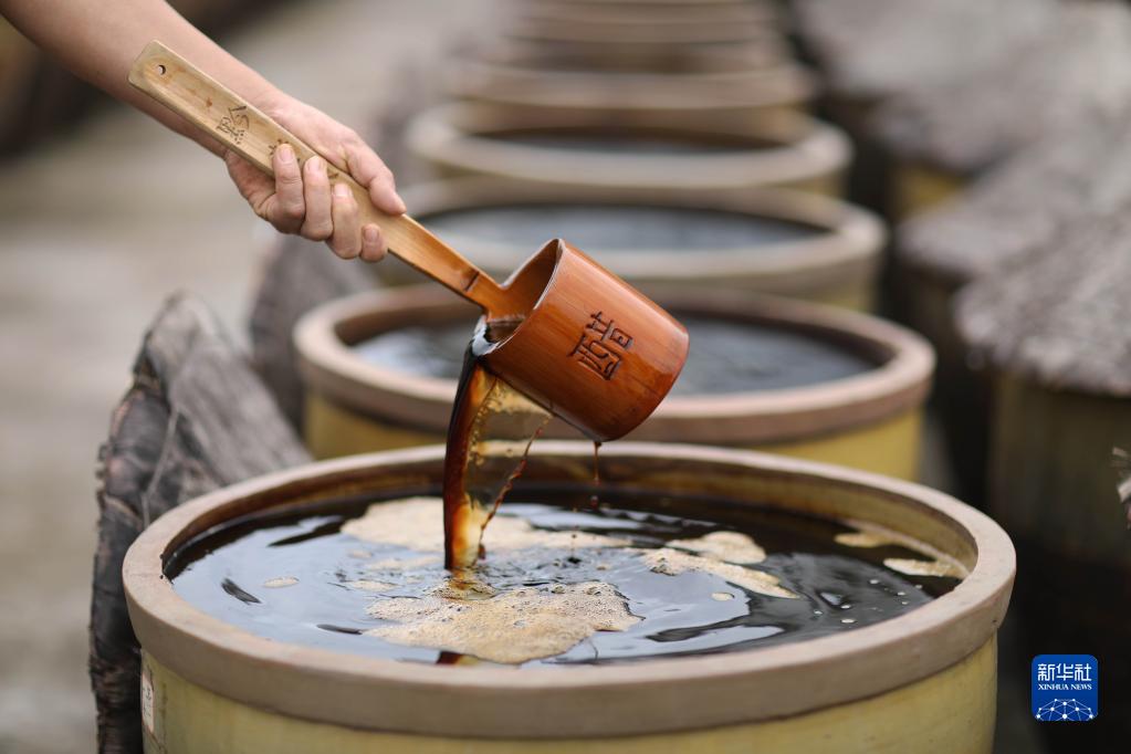 赤水晒醋以中药制作醋曲,用大米、糯米等作原料,经过30多道工序制作而成,具有香、浓、酸、醇等特点,入口风味独特,回味悠长。近年来,当地政府加大宣传和保护力度,大力挖掘和培育乡土人才传承这项古老技艺,通过“线上+线下”展示和销售,让赤水晒醋这项古老技艺在大山里重新焕发生机。