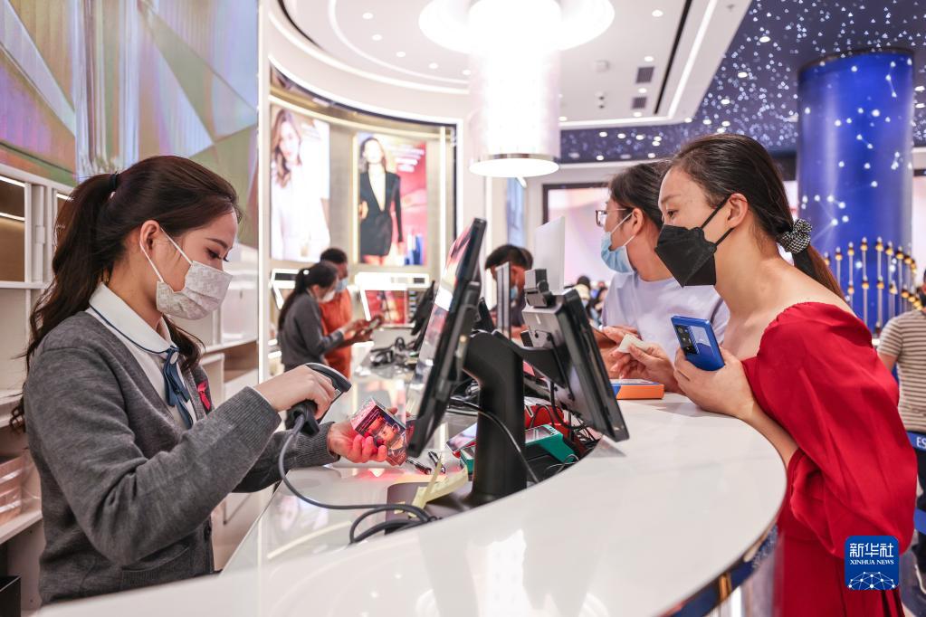 10月28日,顾客在海口国际免税城内结账。