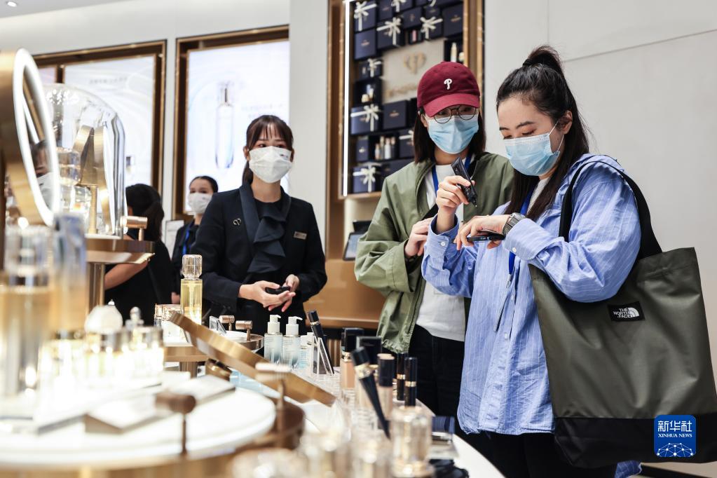10月28日,顾客在海口国际免税城内选购商品。