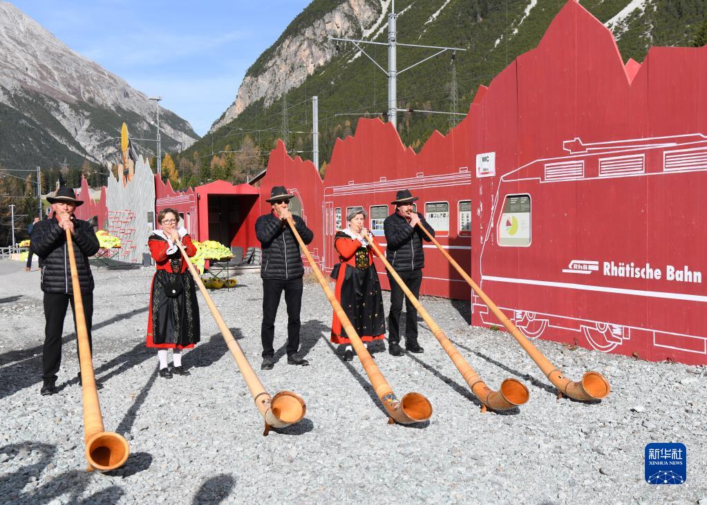 10月29日,在瑞士阿尔布拉,当地民众吹奏阿尔卑斯山号。