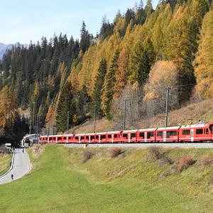瑞士雷蒂亚铁路公司29日开出一列由100节车厢组成、长达1910米的列车,被吉尼斯世界纪录认证为世界最长窄轨客运列车。该列车当天行驶在位于瑞士阿尔卑斯山区的雷蒂亚铁路网上,沿途风景优美。