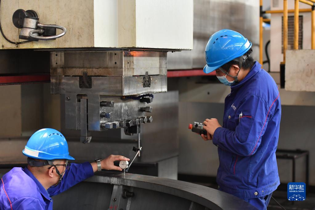 10月30日,在哈电集团哈尔滨电机厂有限责任公司的生产车间,工人在进行生产作业。