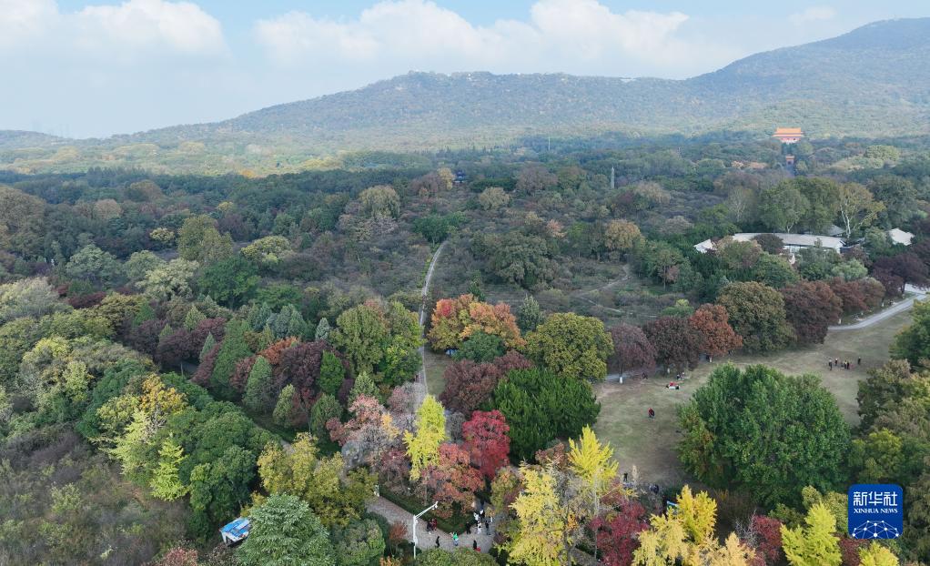 11月1日拍摄的南京钟山风景名胜区秋色(无人机照片)。