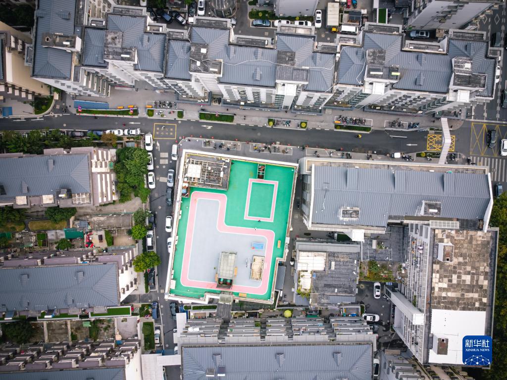 这是11月1日拍摄的北山街道松木场社区利用屋顶空间改造成的运动场地(无人机照片)。