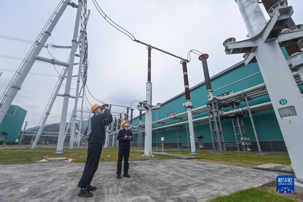 11月2日,国网浙江超高压公司运检人员在±800千伏特高压金华换流站进行设备巡检工作。