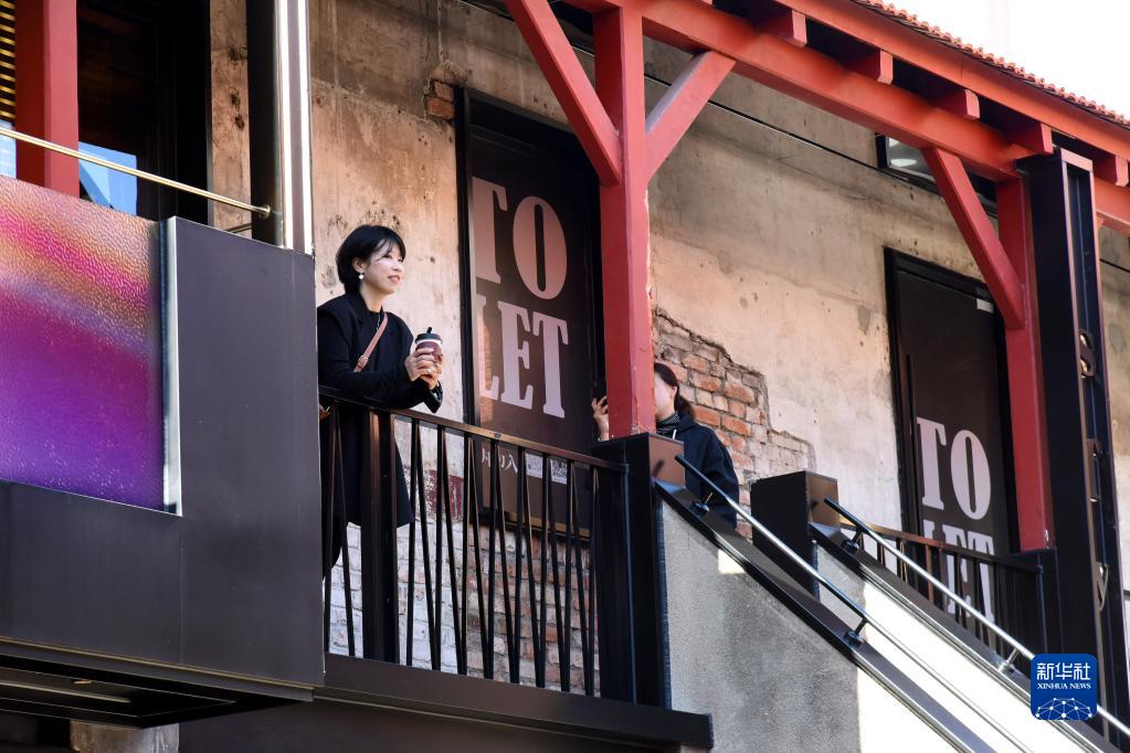 11月1日,青岛市市南区银鱼巷,游客在一处改造后的老建筑内参观。