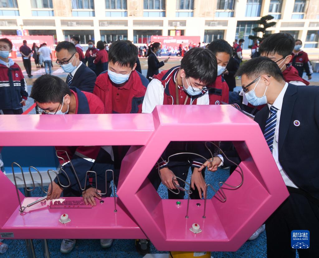 11月2日,重庆市朝阳中学学生在活动现场参观、体验。