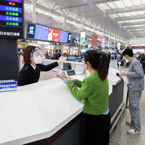 11月2日,上海虹桥火车站服务台工作人员解答问询。