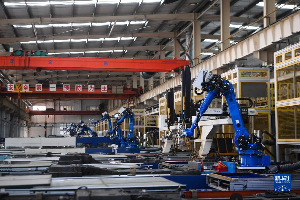 11月2日,在嘉兴南湖区的嘉兴敏惠汽车零部件有限公司注塑车间,全自动机械臂在加工产品。