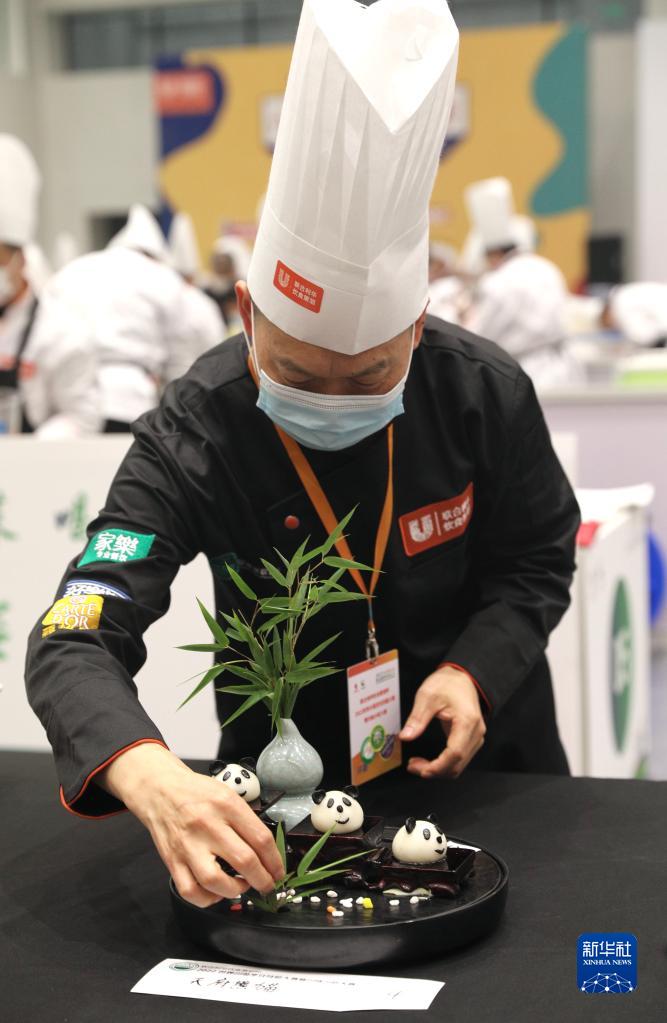 11月3日,厨师在世界川菜烹饪技能大赛暨川味小吃大赛上展示作品。