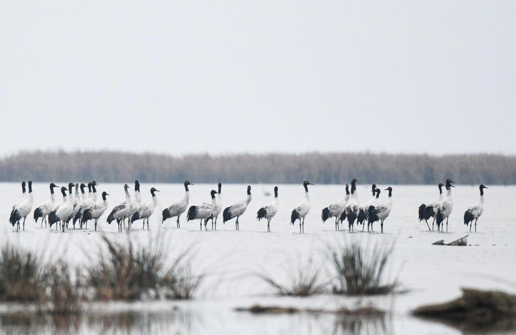 贵州草海湿地迎来今年首批越冬黑颈鹤