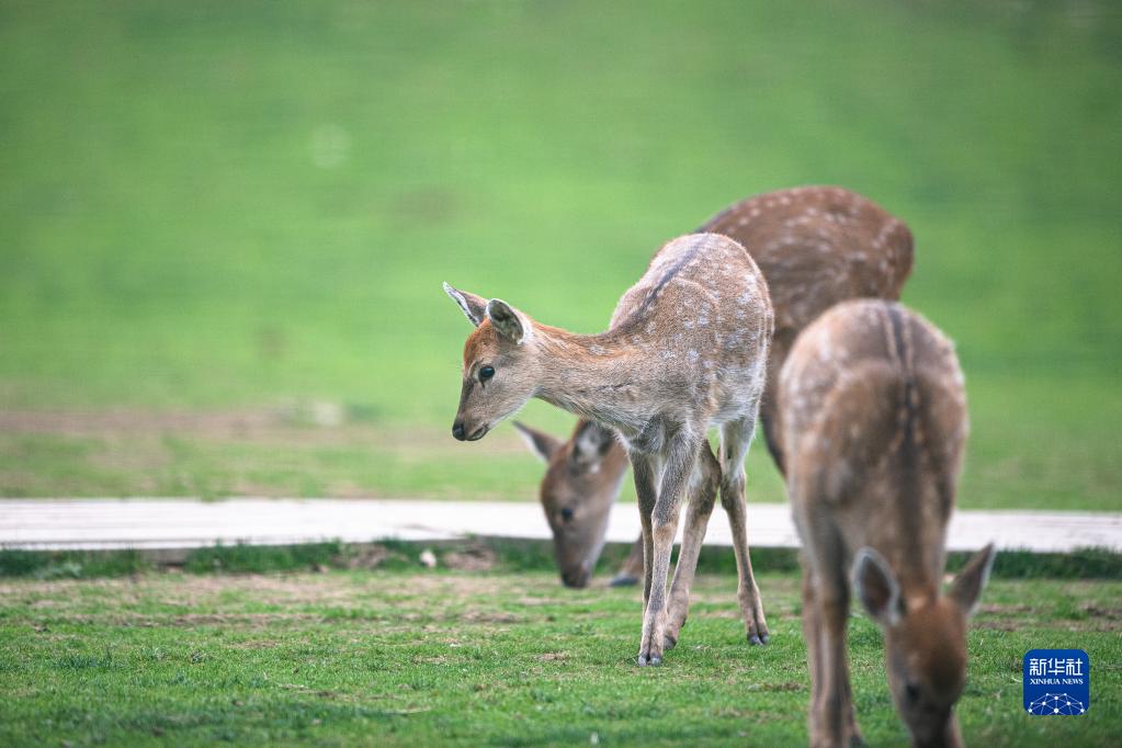 10月15日,梅花鹿在神农架大九湖国家湿地公园内活动。