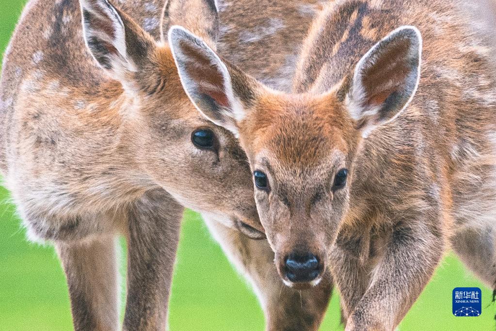 10月15日,梅花鹿在神农架大九湖国家湿地公园内活动。
