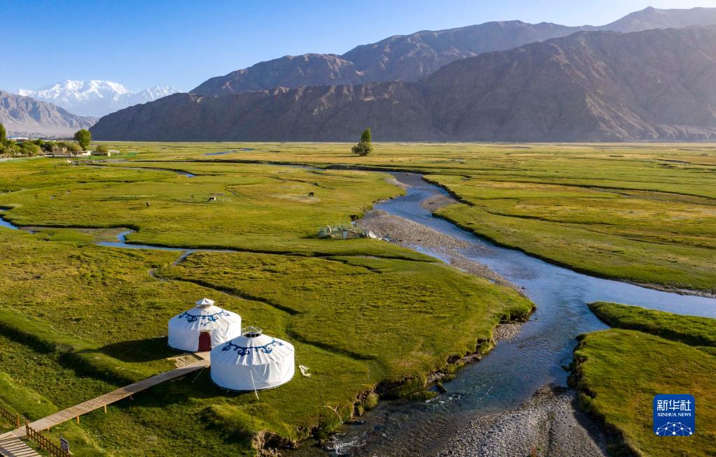 新疆帕米尔高原阿拉尔国家湿地公园一角(2020年6月10日摄,无人机照片)。