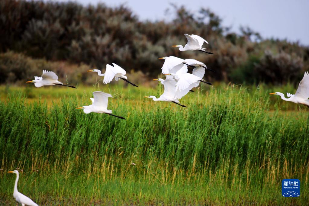 新疆阿勒泰科克苏湿地国家级自然保护区内的白鹭(2022年8月8日摄)。