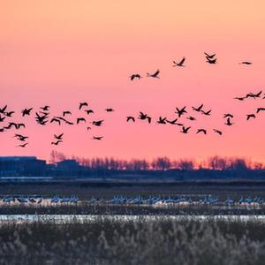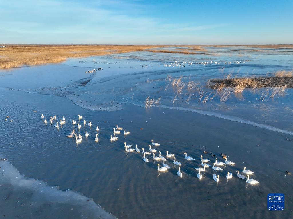 11月4日在吉林省白城市镇赉县莫莫格国家级自然保护区拍摄的候鸟(无人机照片)。