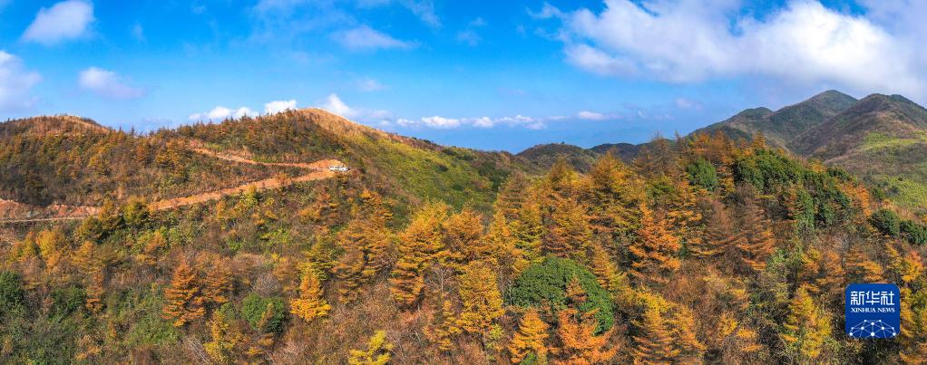 这是11月1日在湖南省湘西土家族苗族自治州龙山县大安乡万宝山林场拍摄的秋景(无人机照片)。 新华社发(曾祥辉 摄)