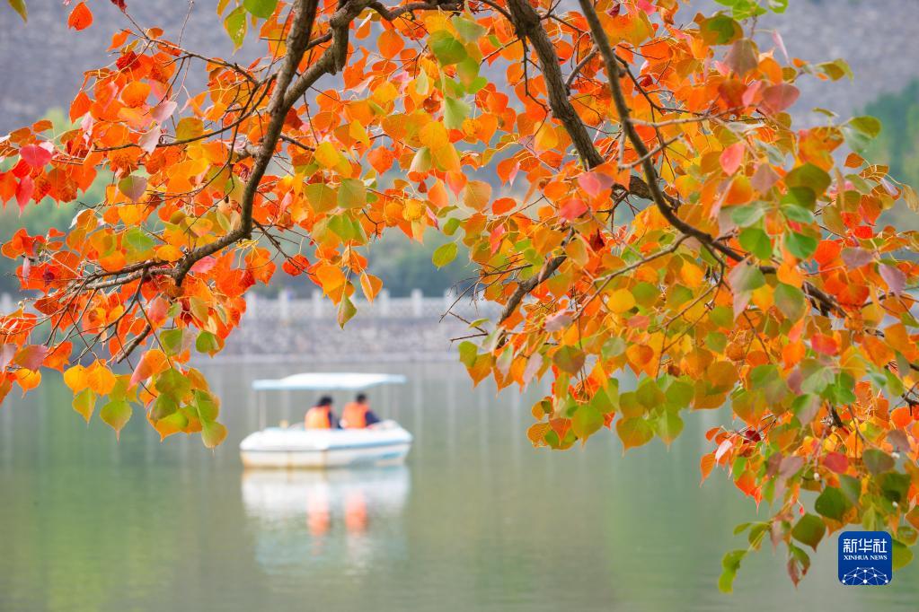 10月30日,游人在江苏省南京市中山植物园划船赏秋。 新华社发(苏阳 摄)
