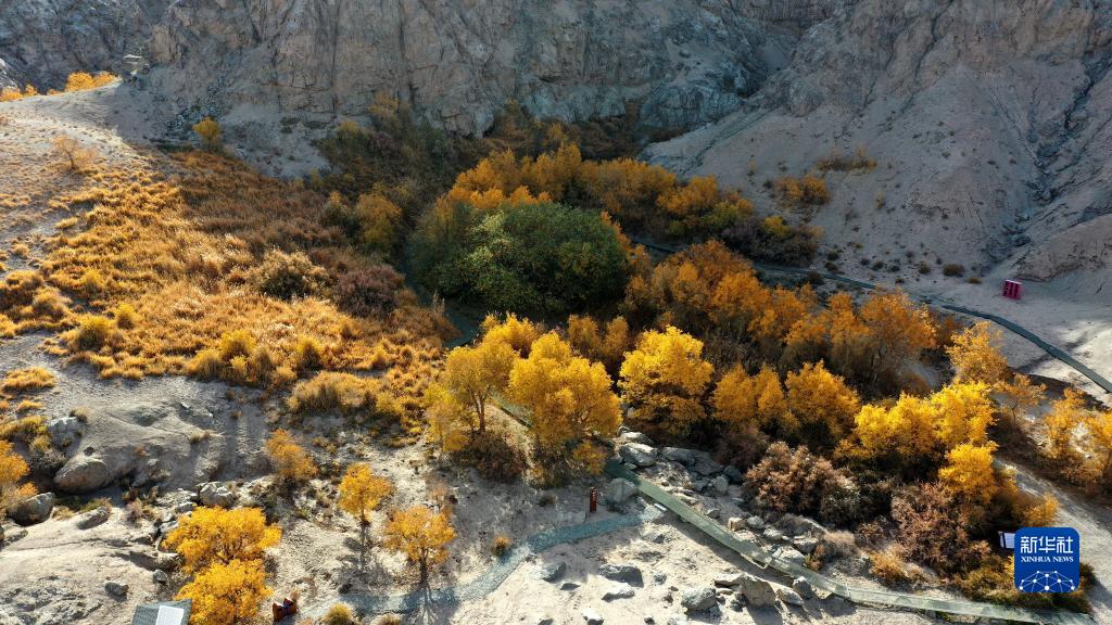 这是10月30日在甘肃省敦煌市悬泉置遗址悬泉谷内拍摄的秋景(无人机照片)。 新华社发(张晓亮 摄)