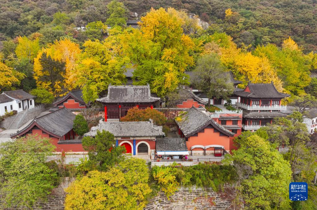 这是10月30日在江苏省连云港市花果山三元宫拍摄的秋景(无人机照片)。 新华社发(王健民 摄)