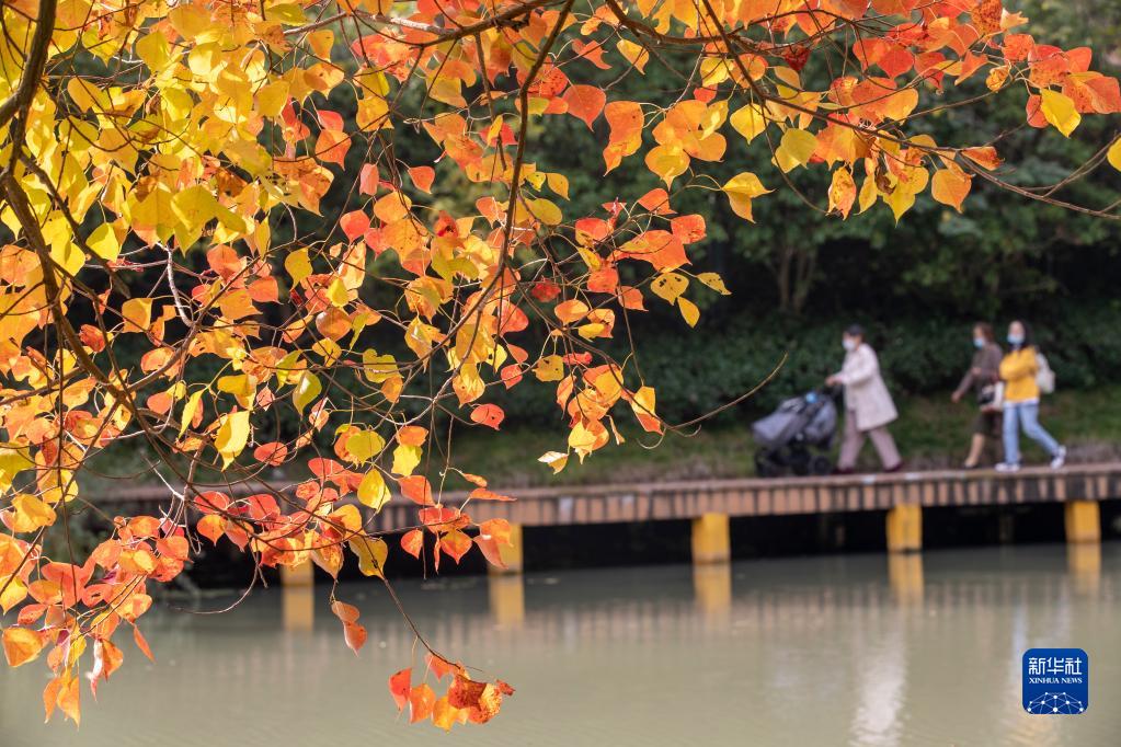 10月30日,市民在江苏省扬州市宋夹城体育休闲公园内漫步赏秋。 新华社发(齐立广 摄)
