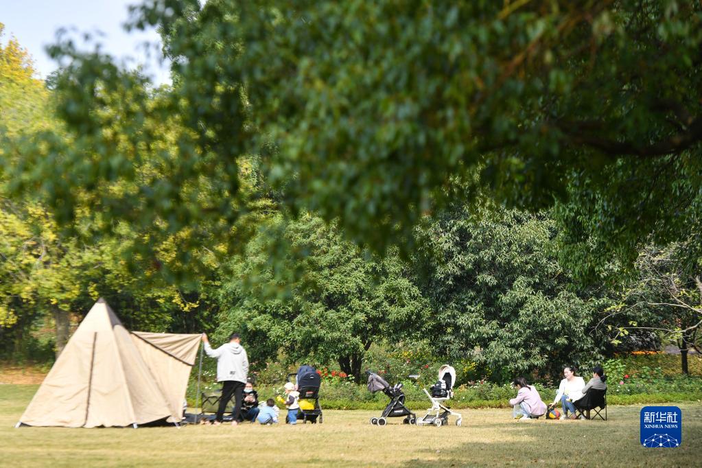11月5日,市民在武汉东湖风景区露营。