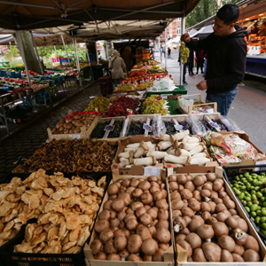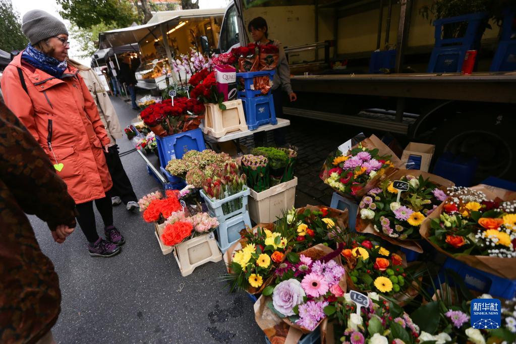 11月4日,顾客在比利时布鲁塞尔一市场选购商品。