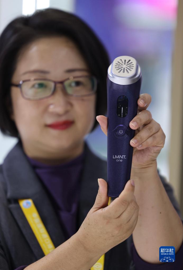 11月5日,在第五届进博会医疗器械及医药保健展区,一款利用LED光电技术设计的光子美容仪亮相进博会。