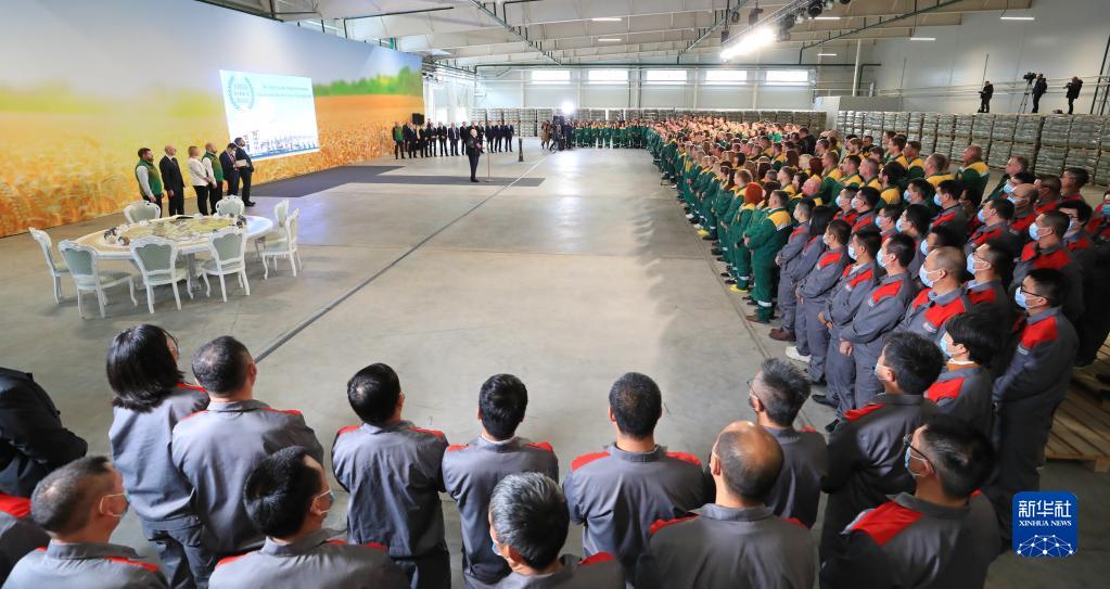 这是11月4日在白俄罗斯明斯克州拍摄的白俄罗斯国家生物技术公司全循环高科技农工综合体项目投产仪式现场。