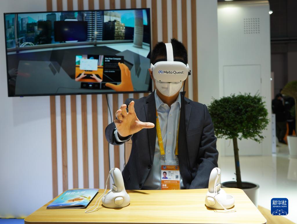 11月5日,参观者在第五届进博会技术装备展区人工智能专区体验元宇宙交互应用。