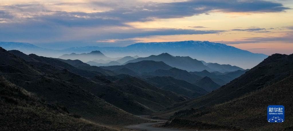 夕阳下的新疆裕民县巴尔鲁克山冬季牧场(11月4日摄)。