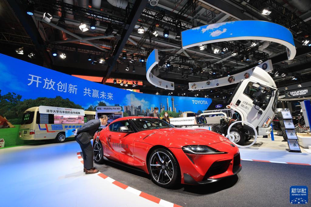 11月6日,参观者在第五届进博会丰田展台观看一款手动驾驶车。