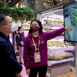 在第五届进博会的食品及农产品展区,光明母港(上海)种业科技有限公司将集装箱植物工厂的模型搬进展会,在超市货架般的装置上一层层排列种植蔬菜,现场展示智慧农业的新发展模式。