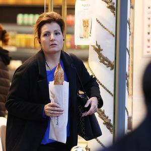 11月7日,一名女子拿着刚刚买到的法棍面包走出法国巴黎一家面包店。