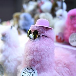 11月7日在第五届进博会秘鲁“温暖驼”展台拍摄的羊驼毛玩偶。
