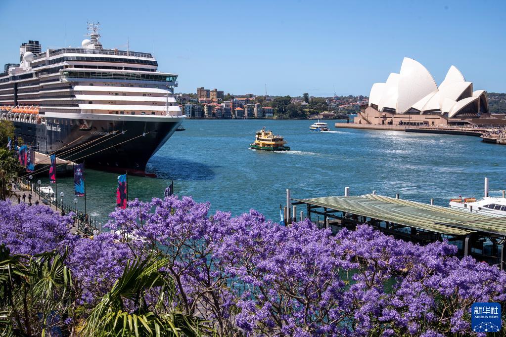 这是11月7日在澳大利亚悉尼歌剧院对岸拍摄的盛开的蓝花楹。