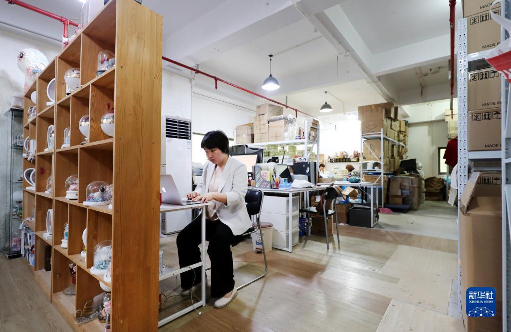马玉霞在位于上海的办公室里回复邮件(2021年10月15日摄)。