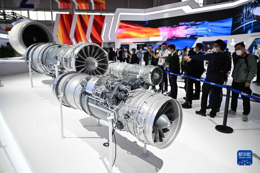 这是11月8日在航展上拍摄的中国航发展示的“太行”系列发动机。