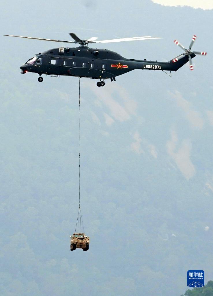11月8日,陆军某空中突击旅直-8L战机吊装全地形车飞赴目标地域。