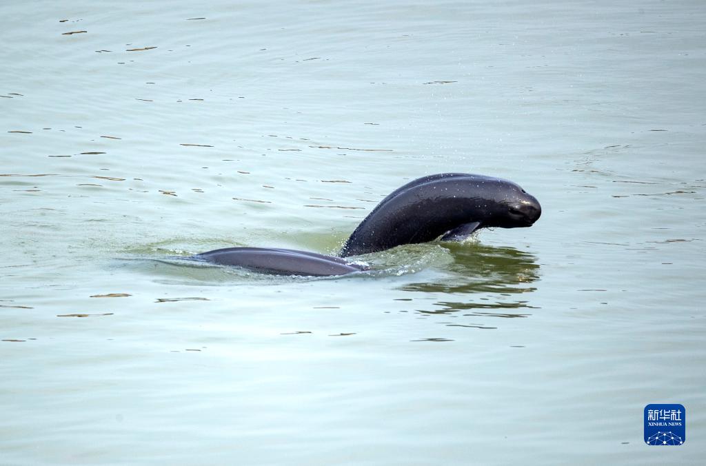 这是11月8日拍摄的长江葛洲坝下游水域中的江豚。新华社发(文振效 摄)