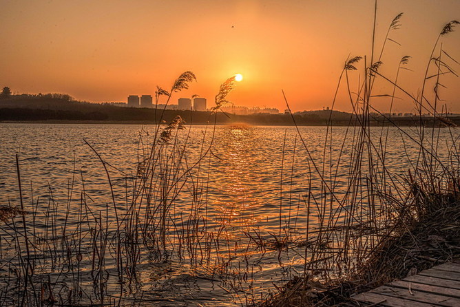 芦苇,涟漪,山与城的剪影,斜挂半空的夕阳,以及漫天和满河的金光,当然还有微风,以及此刻端详着“母亲河”的你。
