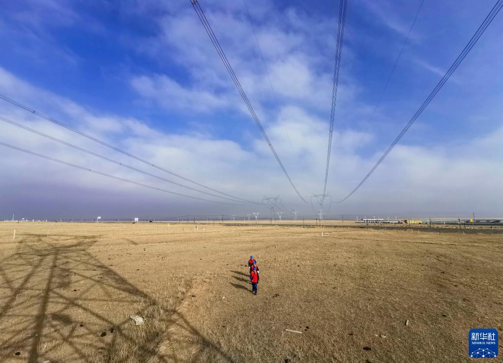 国网哈密供电公司运检人员对跨越东天山的750千伏输电线路进行特巡(11月9日摄)。