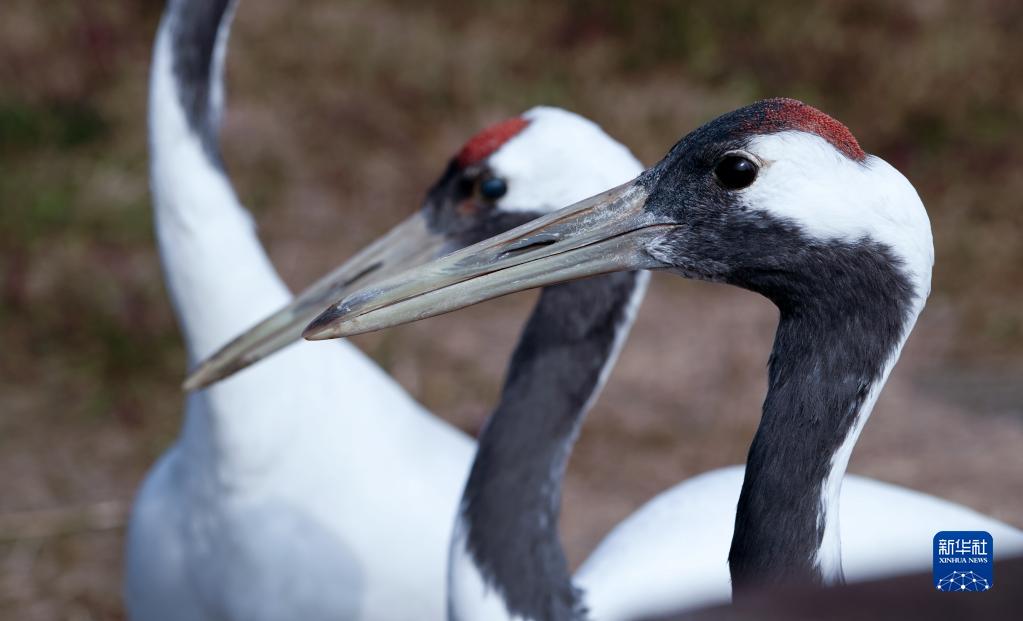 几只驯养在盐城湿地珍禽国家级自然保护区救护繁育中心的丹顶鹤在活动(11月8日摄)。